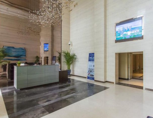 B座大堂净面积57平米,高度8.4米;电梯厅面积25.9平米;