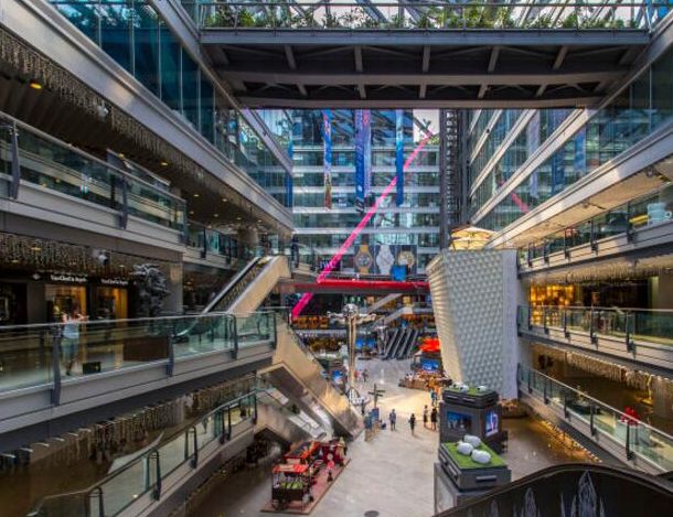用尖端科技实现绿色环保,同样是PARKVIEW GREEN芳草地的显著特色。它巧妙地通过金字塔般的外形将四座塔楼建筑连接为一体,不仅在外观上引人注目,而且在功能上更具完备性。整座建筑物外层覆盖的ETFE透明膜,是与北京奥林匹克国家游泳中心采用的相同的膜材料,具有强韧、自清洁、可回收等特性,可创造出舒适健康的绿色环境。而由四座钢架结构组成的建筑在外罩的保护下,自身便具备了调节微型气候的能力,令人体会到犹如置身于大自然中一样的微风,为商业租户、客户及顾客创造出怡人的室内微气候,使其轻松享受四季如春的室内花园、日光庭院以及敞阔优雅的中庭广场。
