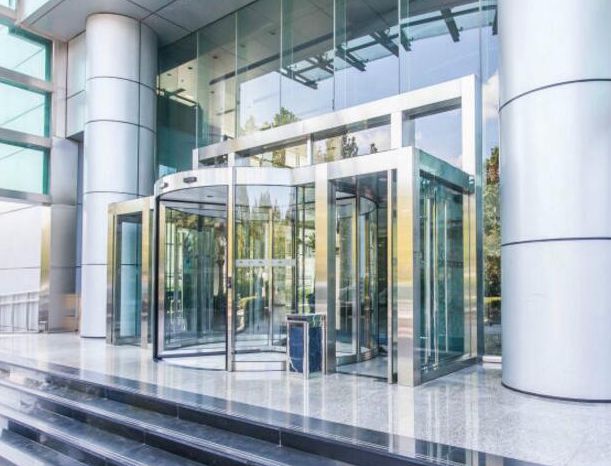 门头钢结构及吊挂玻璃幕墙、电动旋转门